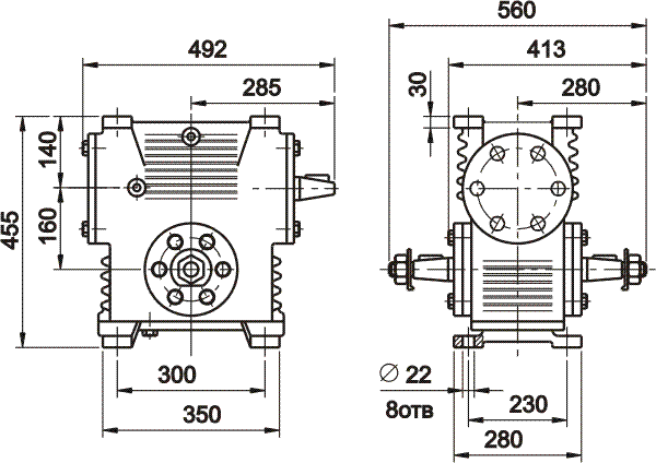 Исполнение редуктора с верхней крышкой.