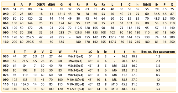 Размеры фланца для присоединения электродвигателей к CHM 030-130