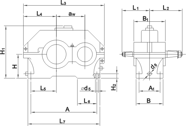 Одноступенчатый горизонтальный цилиндрический редуктор 1ЦУ-100, 1ЦУ-160, 1ЦУ-200, 1ЦУ-250